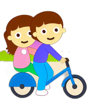 귀여운 여자아이와 남자아이가 자전거를 타고 가는 이미지